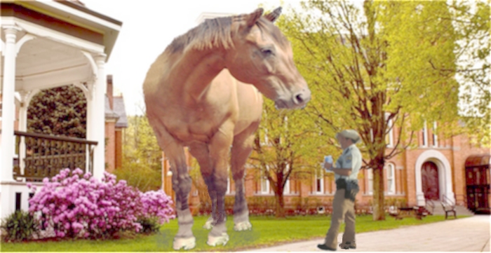 Arabian Proverb The large horse appeared one spring day wandering the popular and busy open air marketplace of our small town. Retired and alone, I had nothing else to do and nowhere in particular to go, so I decided to follow it. It was the lunch hour and the streets were overcrowded with harried and hungry hurrying people. Though the huge beast appeared to be quite docile, most went out of their way to avoid it. It discreetly ate of the spoils dropped by clumsy shoppers and negligent vendors on the streets and sidewalks, moving in and out in a leisurely fashion so as not to scare anyone with its massive presence. I continued to follow its rambling course. Throughout the day, it roamed the streets, never accosting anyone, never causing any damage, never approaching anyone too closely. True, it did cause some significant traffic snarls on occasion, but that could happen on any day for any ridiculous reason. Since the large horse moved slowly and deliberately, I was able to keep up with the animal easily and at a safe distance. I intentionally did not get too close to the creature. I didn't want to provoke it to any form of agitation or aggression. As a soldier in my past life, I understood the importance of cautious surveillance. I studied the beast as I followed it. I estimated its height from hoof to mane at twenty-five feet. Its fur was a fine and beautiful golden hue. It appeared well-groomed, as though it had been well cared for by a loving trainer. Many thoughts muddied my mind concerning the large horse. Who indeed was its trainer? Where was its master? Who would let such a fabulous beast wander freely, clearly so far from its home? And indeed, where was the home of such a magnificent creature? I speculated about a mythical homestead in an alternate universe. My theories frequently went far astray of sense and reason. As the afternoon sun dropped, I followed it into our tiny park across from the municipal building. It stopped when a small child approached. I caught my breath. This could end badly, but it was too late for me to intervene. The boy, no more than six years old, held out his tiny hand, offering the horse an apple, which had one small bite taken out of it. Before the boy got too close, his mother snatched him away. The apple dropped to the grass as the mother and boy hurried away quickly. The horse cautiously sniffed, then ate the apple. Eventually the horse lay down, covering nearly half of the park's expanse. It appeared to go to sleep. I continued to stare at the magnificent creature, still astounded at its beauty and sheer size. After a while, I realized I hadn't eaten since breakfast and so I left, certain I had some still palatable leftovers in my small refrigerator. The next day I heard the large horse was found dead in the park. After they examined the body, they systematically carved it up. They gave horse meat to the homeless shelters. They donated its fur to cancer hairpiece organizations. Other parts were given to medical research labs. A taxidermist preserved its head and placed it on a pedestal at the center of our park. I visited the park often after that. I would sit and contemplate many things while gazing upon the monument of the large horse. I came to realize its life and purpose had ultimately been fulfilled in a beautiful way. But I continued to wonder where it had come from, and why it had come here of all places, a place where no one appreciated the constant sacrifice of everyday heroes. ©John A. Frochio 2017 All Rights Reserved |